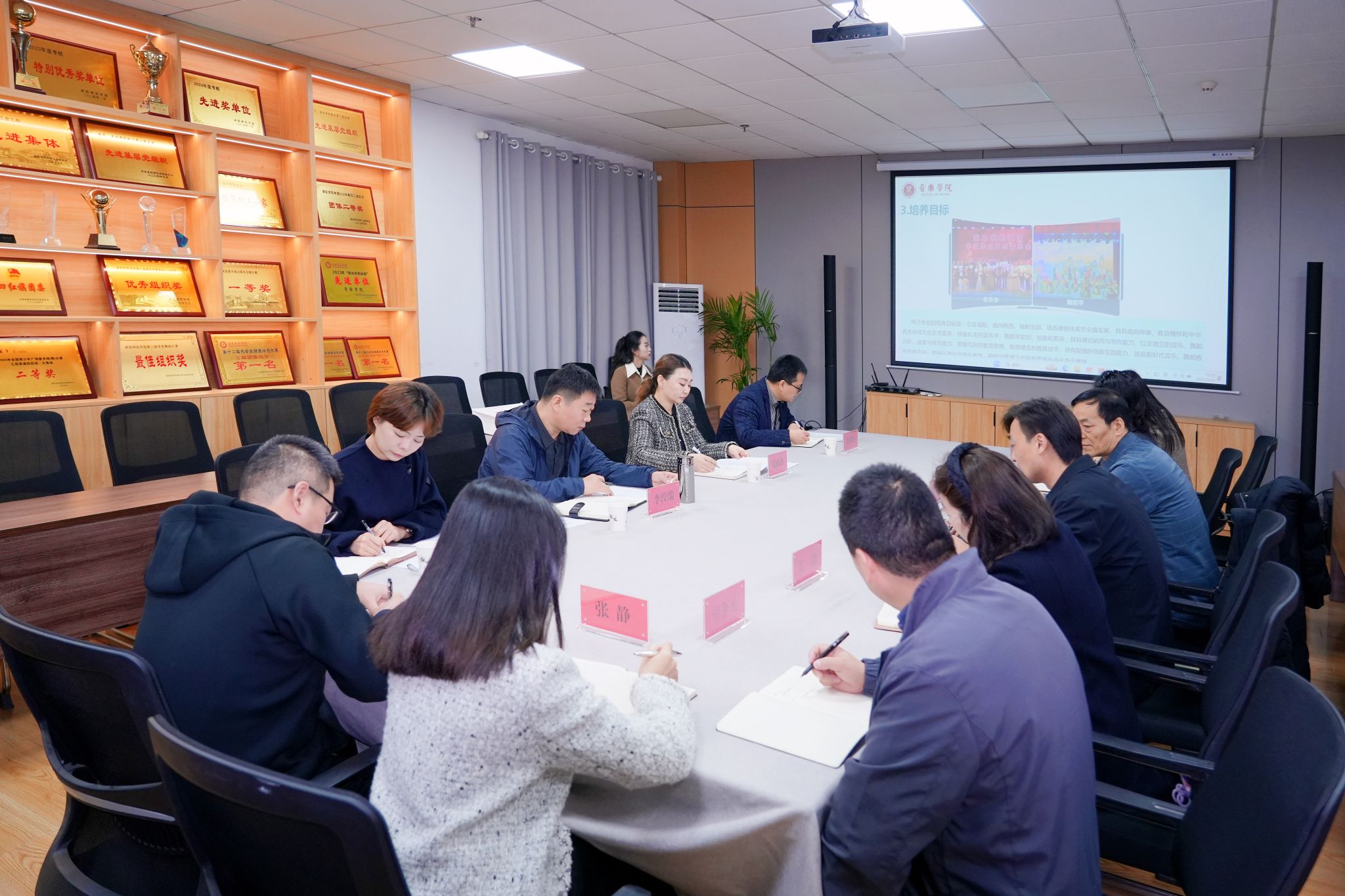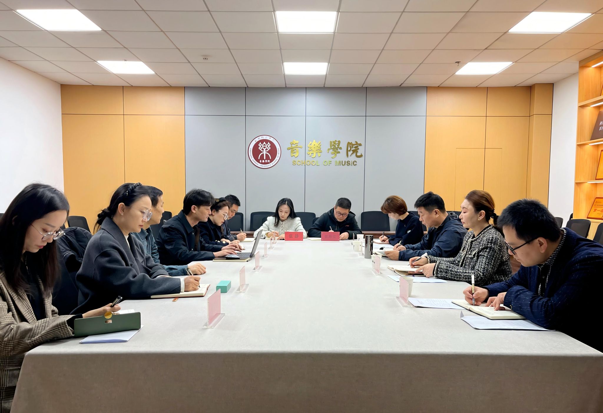 学院党政办公室、人事处、教务处相关负责人参与调研,音乐学院党政领导、专业负责人、工会主席、两办主任参加了会议。
